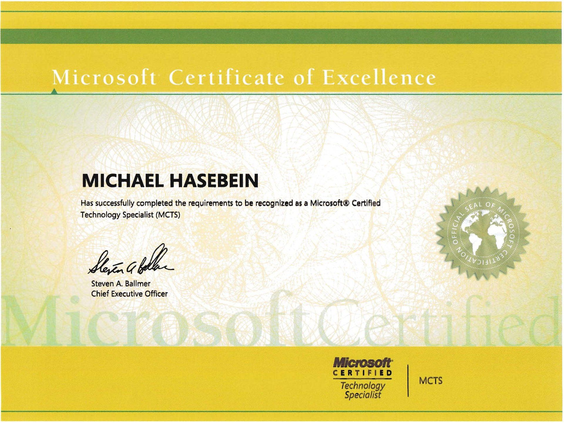Zum späteren Zeitpunkt habe ich mich weitergebildet, anhand von Microsoft Zertifizierungen. Das stellt Ihnen sicher, dass Sie es mit einer hochqualifizierten Fachkraft zu tun haben, die weiß was zu tun ist in einem Servicefall. Durch meine Sicherheitsüberprüfung Ü2, habe ich im Bankensektor, im Marine-Bereich und bei der Bundeswehr in den Sicherheitsbereichen zutritt gehabt, meinen Job immer zuverlässig und gewissenhaft ausgeführt. Vertrauen ist das oberste Gebote bei meiner Arbeit mit Ihnen!